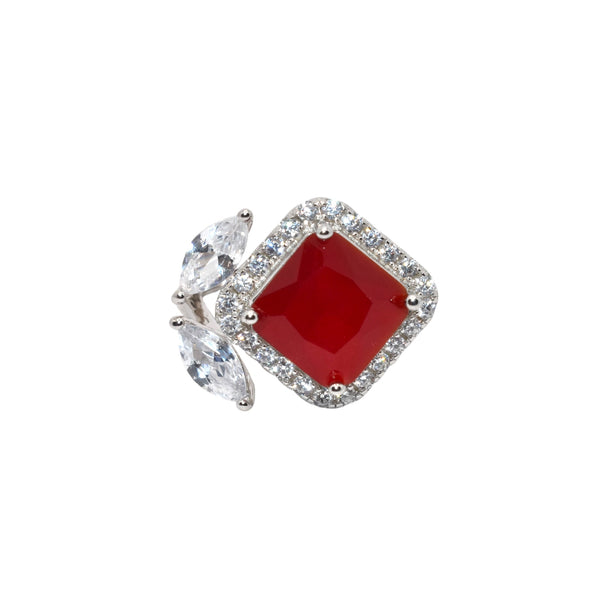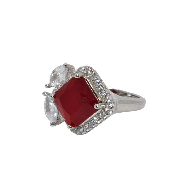 Ruby Coloured Cushion Cut Ring