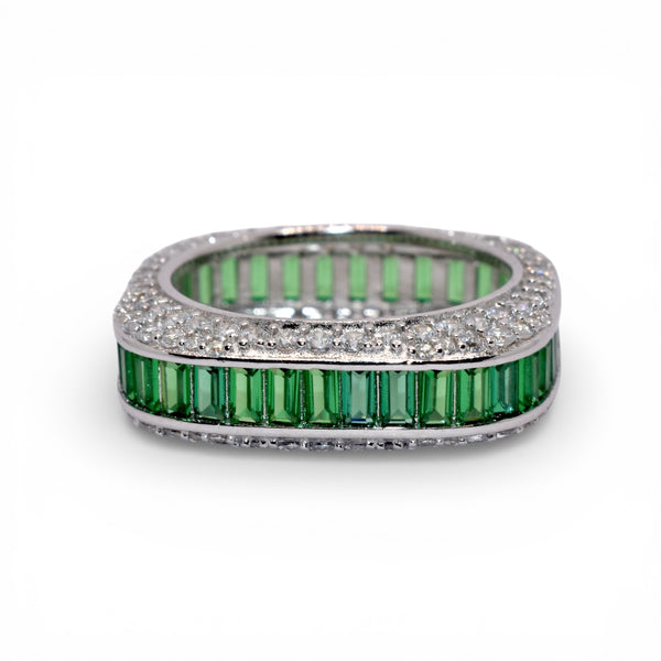 Product Description : Emerald Coloured Baguette Band Ring