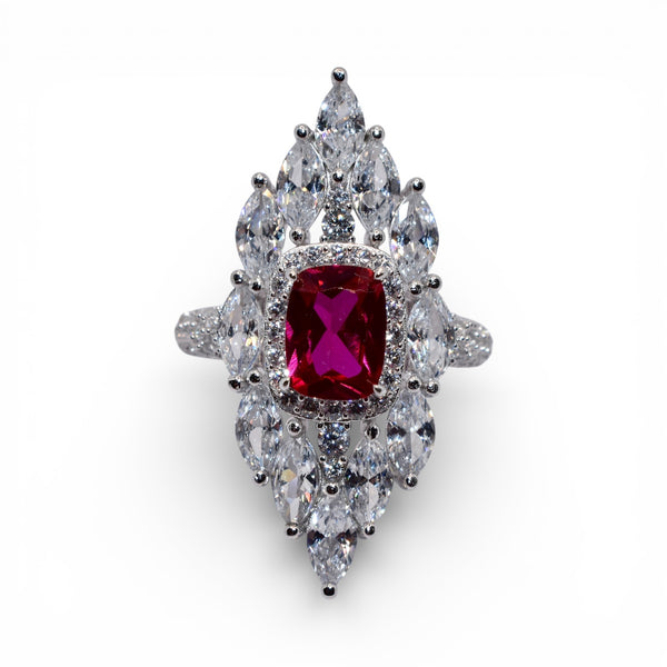 Product Description : Marquise Emerald Cut Ruby Coloured Ring