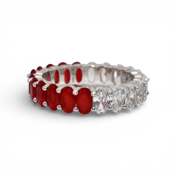 Product Description : 2in1 Ruby and white coloured Band Ring