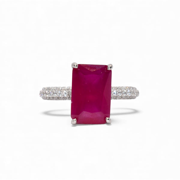 Ruby Coloured Emerald Cut Ring