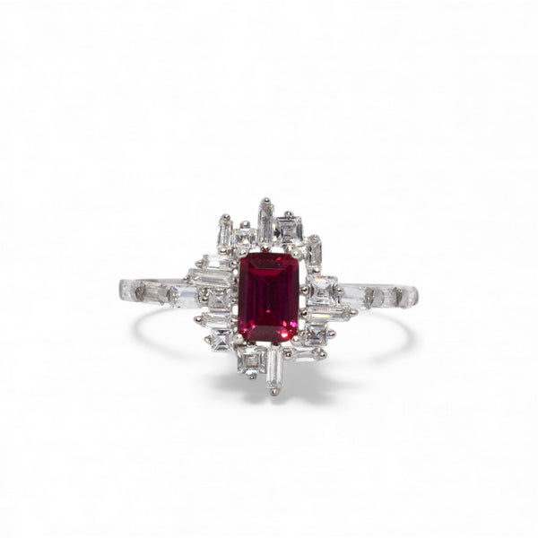 Product Description : Ruby Coloured Emerald Cut Ring