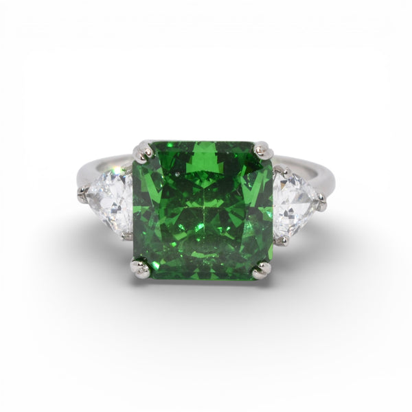Emerald Coloured Cushion Cut Ring
