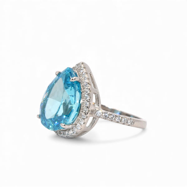 Halo Pear Shape Ice Stone Aquamarine Coloured Ring