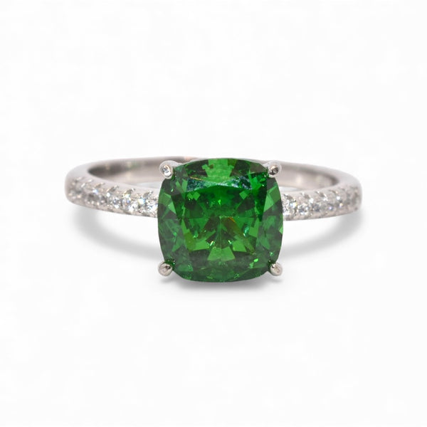 Ice Stone Emerald Coloured Cushion Cut Ring