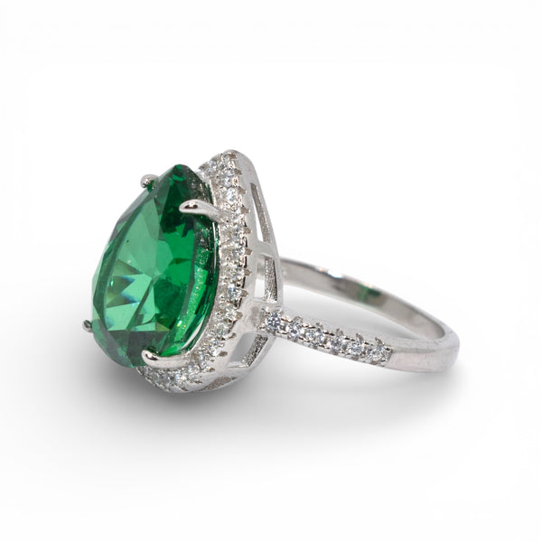 Product Description : Halo Emerald Coloured Pear Shape Ring