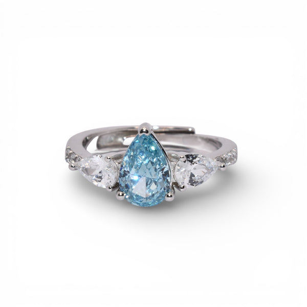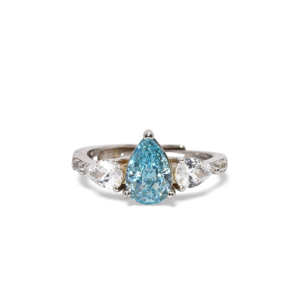 Product Description : Aquamarine Coloured Pear Shape Triple Stone Ring