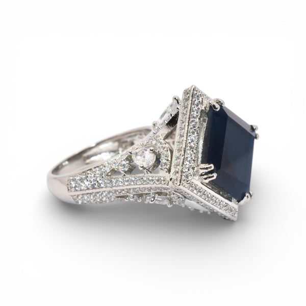 Product Description : Sapphire Coloured Cushion Cut Cocktail Ring