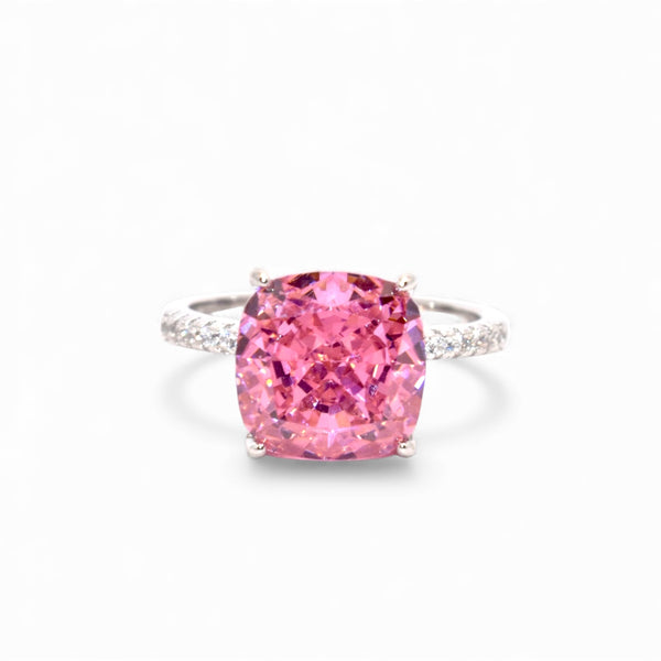 Product Description : Pink Coloured Ice Stone Cushion Cut Ring