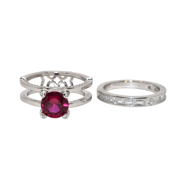 Product Description: Solitaire Ruby Coloured Dual Set Ring