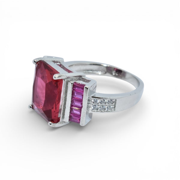 Ruby Rectangle Baguette Ring – Silver Attractions